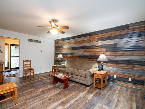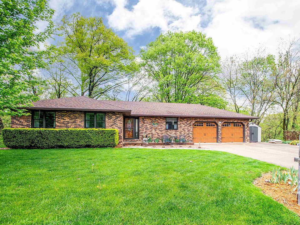 Nestled on a serene wooded lot, this beautifully updated brick ranch home offers the perfect blend of comfort, style and privacy. The home features an easy living floor plan including a remodeled kitchen with stainless steel appliances. Spacious bedrooms have roomy closets (primary bedroom closet is cedar lined). Oversized family room, workshop, fourth bedroom/office (no egress window) and laundry room are located in basement. Step into the spacious three-season room--ideal for relaxing or entertaining year-round--where you'll find a private hot tub overlooking the tranquil backyard. Mature trees provide a natural backdrop and plenty of shade while the fully fenced backyard offers security for pets and peace of mind for outdoor gatherings. Two sheds, compost bin and fenced-in garden complete the park-like setting. Whether you're sipping coffee on the patio, soaking in the hot tub, or enjoying the view of the woods, this home delivers comfort and quiet charm with every detail. Updates include: remodeled family room in 2014; remodeled kitchen in 2017; roof, windows and front door in 2018; remodeled bath and living room, LVT flooring throughout main level, furnace and A/C in 2019; water heater and water softener in 2023. All appliances, electric fireplace, hot tub and pool table to remain.