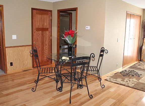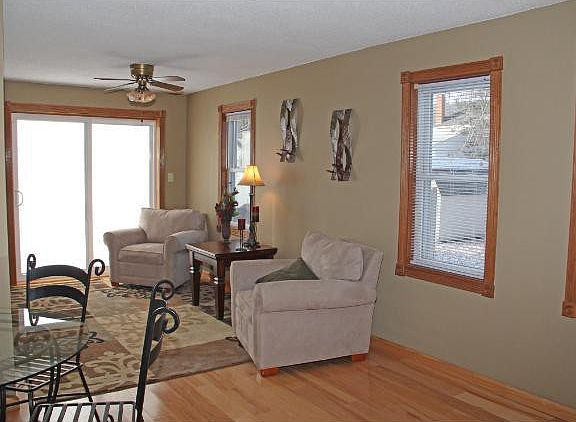 Tastefully done updated home - shows well! Hardwood floors, new roof on garage, new carpet , fresh paint, finished lower level family room, back splash in kit., and so much more! 3 BR, 1 bath home, fenced yard. Att 1 car gar and det 2 car gar.
