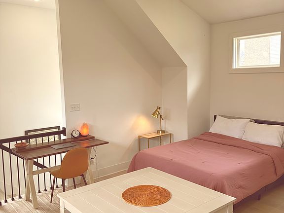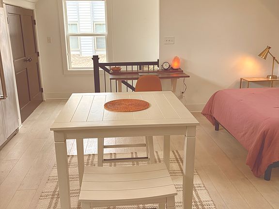 Fully furnished loft with garage. Lots of natural light. Finished Garage has multiple TVs, couch, fridge, grill, EV plug in, and cabinets to enjoy all year round. Studio includes custom cabinets and luxury appliances. 2 full parking places + garage. Backyard leads right up to Nashville SC stadium. Within a mile or two from Belmont, Vandy, Lipscomb, hospitals, and downtown. Would also be perfect for contractor garage, artist space, or entrepreneur that needs office space. Can remain furnished at no additional charge. Happy to accommodate lease length. Main house will be occupied but plenty of privacy. Utilities and Wifi included. Pets allowed for $200/ month. Please do not bother current tenants. Utilities, landscaping and wifi included in rent. 2 parking spots + 1 garage spot. Lease duration can vary.