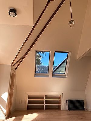 2 bdrm in the trees...of Brooklyn + PARKING available 11/1, later is also possible. NO FEE, NO BROKERS. $3300 per month (electrical not included. Heat, wifi + SimpliSafe alarm system with video doorbell ARE included) Note: We will make appointments to show apartment on the weekend of 10/23 and 12/24. We realize that is late for 11/1, so that's why 11/15 or even 12/1 availability is totally fine. Sorry it can't be sooner! Live on the top floor of a gorgeous, completely renovated Victorian home 1 1/2 blocks away from Cortelyou Rd. It comes with a parking spot...or we can work together to make that a little garden for you. Cathedral ceilings, and lots of built-in storage. It has its own entrance, wholly separate from the owners (hey, that's us). Everything is brand new since we've finally emerged from 3 years of renovation due to many delays from Covid. 3 floor walkup with 2 landings upon which you can store things like shoes/jackets etc. Brand new LG washer and dryer, dishwasher. The shower is the most amazing shower ever with that porthole skylight. Water heater and stove are electric. We are obsessed with light and this apartment is basically soaked in it. The skylights all open remotely and are solar powered and have a sensor so if it starts to rain they close automatically. The skylights in both bedrooms have remote controlled blackout shades, the ones in the living room are shades. A/C units are split units so no need for any window A/Cs. We re-insulated the roof and walls extremely well so it doesn't get overly hot or cold. The larger bedroom can easily fit a king size bed, the smaller bedroom can fit a queen, but a double bed would be better. It would be the perfect office. And yes that little skylight opens too. We live in the heart of Ditmas Park, the largest neighborhood of Victorian houses in the country. Cortelyou is 1 1/2 blocks away with many restaurants, health food store, the Flatbush Food Coop, wine store, bars, Lea has the best bread freshly made every day. Every Sunday there's a farmer's market near the library. It's as cute as it gets and we feel like we live in a small town...but not too small. Prospect Park is a 12 minute walk from us, or a quick 5 min bike ride up through the leafy streets. Newkirk Ave also has more restaurants, and Newkirk Plaza even more. We're are about a 7-minute walk from Newkirk subway stop where the B and the Q run. Cortelyou station is also like 7-8min walk. The B68 goes straight up Coney Island Ave if you need to catch the F. Lots of other buses too. If you have a car, the Prospect Expressway is very easy to get on. One photo shows the gravel covered triangle which is the parking spot. That will soon be landscaped better, but for now that's what it looks like. We will offer a video tour if you are interested and can have a zoom call to chat. We have been very very careful with Covid around. We are currently living in the building with our 13 year old twins. We're artsy foody types who actually respond promptly if something needs fixing. Which of course it never willbecause in this magical house, nothing ever breaks. Just kidding. Sorryno pets. We have allergies. :( This is a no-smoking house Available Nov. 1st or later if necessary 1st month + security deposit. NO BROKERS PLEASE, THIS WILL STAY A BROKER'S FEE FREE LISTING