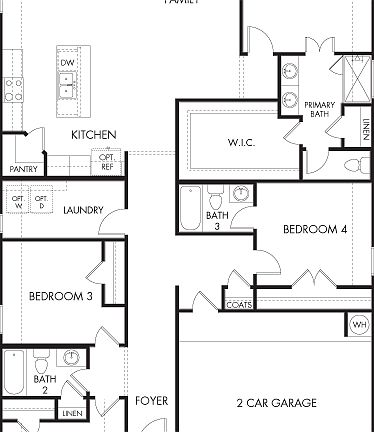 The Preston's fourth bedroom is perfect for guests or a growing family. Linen cabinets with white granite countertops, brown grey EVP flooring with multi-tone carpet in our Elemental package.