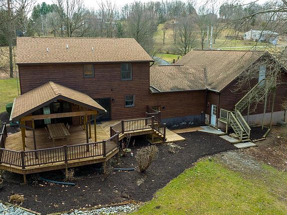 WOW! 4.5+ acres on a private setting with pond in Dallastown School District! Bring your tools and large equipment to utilize the 1600 sqft detached garage along with 40 x 32 and 26 x 20 oversized attached garages featuring high ceilings, 40 x 20 loft area, and workbenches! This home has a wonderful layout for indoor and outdoor entertaining. A spacious kitchen features a breakfast bar, double oven, cooktop, and sliding glass door leading to the expansive rear deck. A large family room is directly located off the kitchen which also has access to the rear deck. A formal dining room and powder room complete the main level. The upper level features a master suite with walk-in closet, two spacious bedrooms, a guest bath with a laundry room for convenience. Enjoy the private wooded views all year round on the expansive covered deck! Endless opportunities await on this private 4.5+ acre lot!