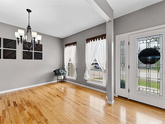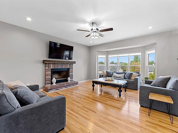 Nestled on a quiet cul de sac, this gorgeous home offers both classic comfort & modern updates. Hardwood floors greet you upon entry & carry through much of the home. The inviting living room features soaring 9' ceilings & cozy W/B fireplace. The eat in kitchen blends functionality with style boasting SS appliances, granite center island bar & under cabinet lighting. The breakfast room leads out to the large composite deck, ideal for entertaining family & friends. Home office, formal dining room, powder room & main floor laundry round out this level. Upstairs houses all 4 bedrooms & BONUS loft area w/ hardwood floors & plantation shutters throughout. Relax in your spacious primary bedroom suite featuring a luxurious bathroom & MUST SEE walk in closet w/ custom shelving. The walkout lower level leads to wrap around patio w/ firepit. Irrigation system. 3 car garage. Fantastic neighborhood w/ playground, pool, tennis & more. Close to highways & amenities! Wentzville (Liberty) Schools.