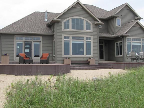 ELEGANT LAKE HURON LIVING NESTLED ON 80' OF PRISTINE SANDY BEACH! ~ Manicured roadside landscaping & winding paved drive off a private road, welcome you to the elegant foyer & tastefully-decorated home interior that still looks brand new! Inside the leaded-glass entry door, visitors are greeted by impressive views of Lake Huron & pristine sandy, low-dunes beachfront, afforded by the soaring 18' cathedral ceiling & arched windows in the stunning Great Room. Warmed by a natural stone & Maple mantle gas-log Fireplace, the Great Room flows to the open Dining/Kitchen area for easy entertaining. For large parties, extra kitchen-prep or wet bar space has been designed into the nearby custom Laundry Room with Corian counter. Stainless steel appliances, an island with Zodiaq Quartz counter & glass cook top, Corian counters gracing custom Cherry cabinetry, deep stainless steel semi-circle sink & walk-in pantry are just a few amenities of this gourmet Kitchen! Tall Casement Windows on 3 sides in the adjacent airy Sunroom afford awesome views of the big lake while you enjoy the stunning morning sunrises with your coffee. Work from home in the pleasant, first-floor Office (or 4th Bedroom) with trey ceiling & French doors. In the evening, retire to your first-floor Master Suite with trey ceiling & fan, triple Andersen doors & overhead transom windows opened to let in the lake breeze, or step out onto the 1006sf custom-shape Trex deck to relax lakeside. The spa-like en suite Master Bath with heated tile floor is separated from the Bedroom by his & hers walk-in closets in the hall; choose a relaxing deep bubble-tub bath or multi-faceted separate shower. Guests will enjoy relaxing in the upstairs Loft Sitting Room with awesome lake views, before retiring to either of two generous Bedrooms; one with adjoining Full Bath. The attached 1120sf fully-finished Garage offers doors for 3 vehicles plus all the toys & wash tub with hot/cold water. Generous closets & storage throughout home; more storage or future living space in the unfinished 11'x19' bonus room above garage. Please contact Listing Agent for an expanded features sheet & more photos, or to schedule your personal tour of this exquisite property!