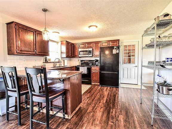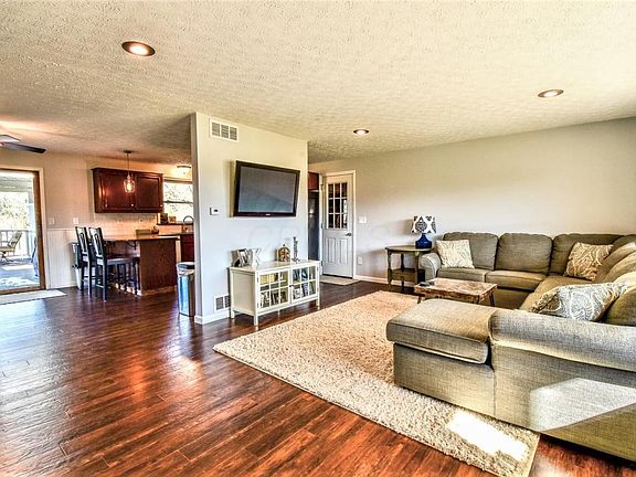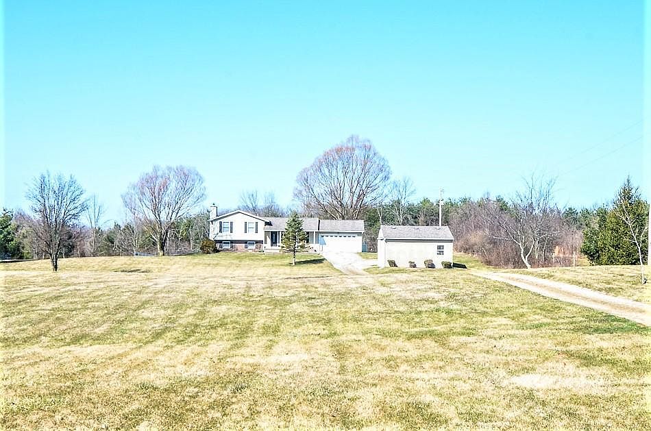 This breathtaking, completely remodeled home is situated on ~3 acres w/25'x25' pole building, 2 car garage & fenced yard. The home features 4 levels of living space w/an open floorplan w/wood floors throughout. Living area w/new recessed lighting, kitchen w/granite counters, new backsplash, eating area & glass doors to the expansive covered deck overlooking the private backyard. 3 beautifully remodeled baths including two in private bedroom suites. The large family room is adorned w/a cozy woodburning fireplace w/brick surround. Finished lower level rec room. All new trim, baseboards, moldings, interior doors, & fresh paint. New natural gas line run to home w/new furnace &AC(2014).