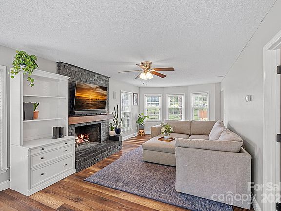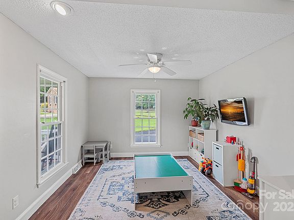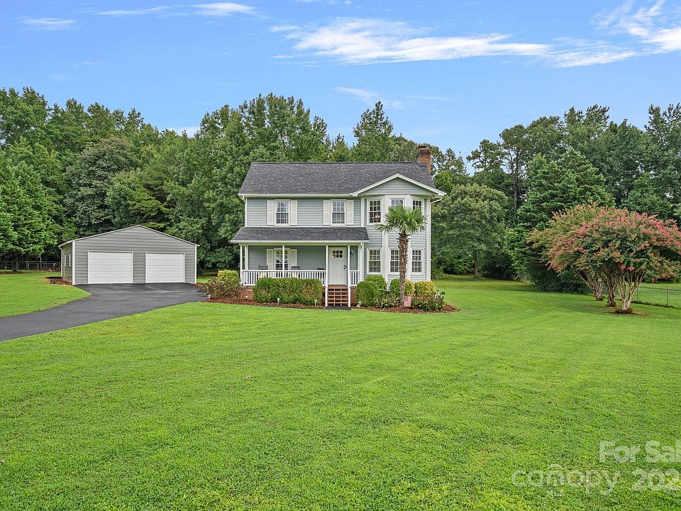 Beautiful farmhouse tucked away on cul-de-sac lot w/ over 1.3 acres w/ NO HOA! Rocking chair front porch welcomes you into the semi-open floorplan w/ Cocoa waterproof laminate plank flooring thru-out the main! Kitchen w/ subway tile backsplash, SS appliances, granite counters, farmhouse sink & pantry. Ample-sized living rm w/ wood burning brick fireplace; leads to large deck overlooking serene backyard. Powder rm w/ shiplap. Flex rm can be used as formal dining, office, playrm.. you name it! Upstairs features 3 bedrms- primary w/ 2 closets. Exterior boasts multiple areas for entertainment – front & side porch & 372SF deck. 900SF+ detached garage & 2 additional sheds (1 w/ electric). Updates include new roof w/ onyx black architectural shingles & transferable warranty (2024), downstairs heat pump (2022), water heater (2019), downstairs flooring (2022) & detached garage (2019/2020). Just minutes away from I-485 & Independence Blvd, yet feels like it’s tucked away in country-like setting!