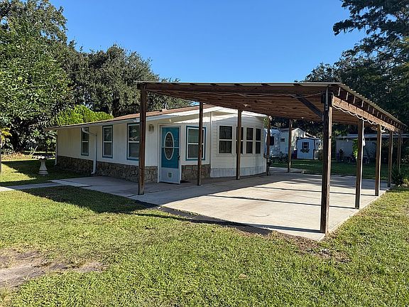 Spacious, all-ages community, pet-friendly. Features a kitchen with gas stove, dining area, 2 living rooms (one addition), Hard floor/Tile throughout, new and modern windows and a big carport, central AC. Lot rent: $825/month (water and lawn mowing included) — one of the lowest rent in the area