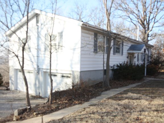 Priceless view with Google fiber! Ranch style house on 11+ wooded acres in a quiet and private setting. 4 Bedroom and 3 baths, finished walkout basement, 2 car attached and 2 car detached garages, enclosed porch/sun room and large deck with breathtaking ridge top view of the Kaw valley. Abundant wildlife including eye level views of eagles and hawks hovering right outside the window. Country living with suburban convenience and Johnson County schools.