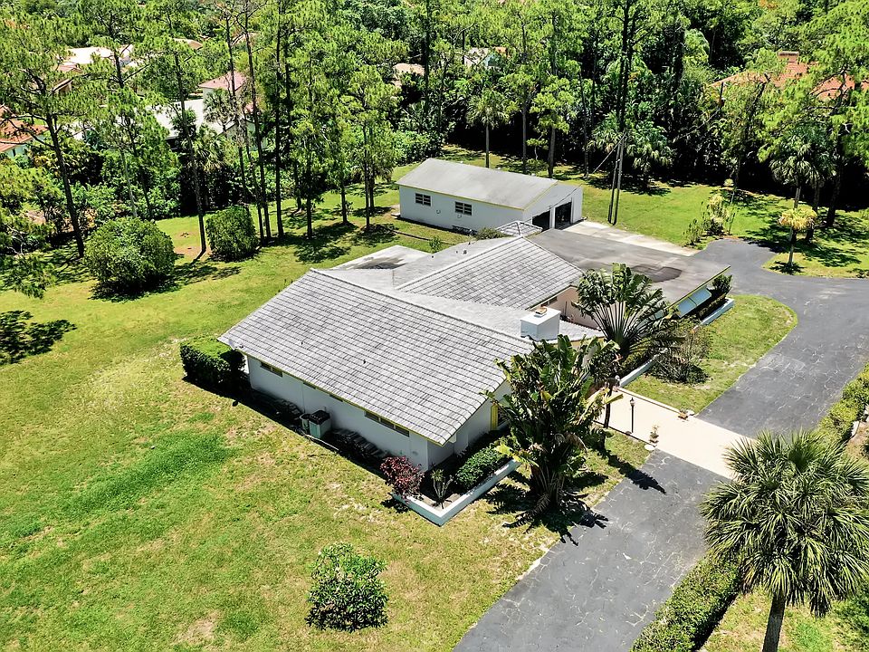 Country Acres rarely available 4/3 home with attached 2 car garage on 2.25 acre corner lot gem in very sought after community. Separate 1350 sq. ft. Barn/garage would be perfect for a car collector which can hold up to 6+ cars. Wrap around island driveway can hold over 20 cars. plenty of land and huge potential to add a pool, or horse stables with 98,000 square foot lot. Split floor plan with 2 bedrooms on each side. Fireplace in one of 2 living areas, glass enclosed patio with extra space to spare. Come make it your own. Home is occupied, please do not disturb owner.