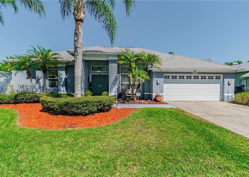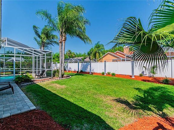Lake Bernadette-Epping Forest! This is a beautifully built Arthur Rutenberg Pool home. Plenty of Florida sunshine flows into the home from 4 sets of sliding doors that lead out to the lanai. The bright sparkling pool was recently refinished, new pool tiles, along with brick pavers on the lanai/pool deck. Brick pavers also added to front porch area and walkway to outside entrance to the 2nd bathroom. Set the mood to relax when you change the interior pool light to a variety of different color choices. Mature palm trees located in the front and back yards of the home. You truly will feel like you are on vacation when relaxing by the pool while listening to the palm trees swaying in the wind. Inside the home the kitchen area offers stainless steel appliances, TV, plenty of counter space and cabinet storage. You will enjoy the surround sound while watching your favorite movies in the Family room. For extra convenience you may open or close the garage door via wifi from your computer or Smart phone. The Master bedroom has a beautiful view of the pool area. Master bath offers a Garden tub, shower, and dual sinks. Also located adjacent to the master bath is a beautiful walk-in closet with custom built shelves and drawers. The Lake Bernadette Golf community has much to offer, make an appointment today to see this beautiful home in this well known and sought after community. No CDD fees!