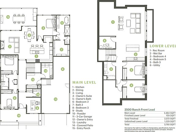 This single-family ranch home is thoughtfully designed to prioritize space and flow throughout. Starting at 2,573 square feet, this 2500 Ranch features an open-concept kitchen, living, and dining area, perfect for hosting a large party or simply keeping an eye on the kids while you cook dinner. Three bedrooms on the main level simplify your lifestyle, with growth options for a finished basement with an additional fourth and fifth bedroom.