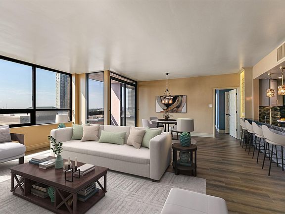 Experience high-rise living in the Uptown/Galleria area, perfectly situated near Nordstrom, the Water Wall, and top-notch dining options! Unit 905 has been completely updated, showcasing a sleek open kitchen and living room design with waterfall countertops and stainless-steel appliances, including a smart refrigerator that stays. A washer and dryer are conveniently included in the utility room. The bathroom boasts modern upgrades with indirect lighting and a modern soaking tub in the guest bath. This unit also includes two reserved garage spaces and a small storage area on level A. The building lobby and common areas have been elegantly refreshed. Schedule a tour today and seize the chance to enjoy this exceptional living space!