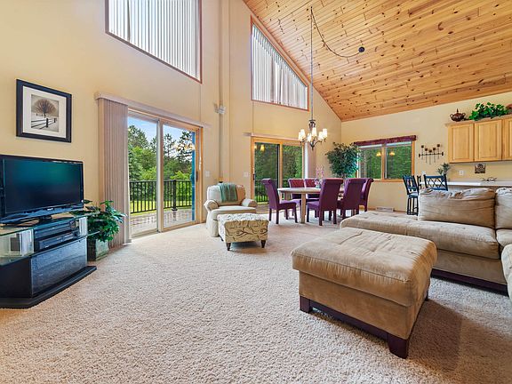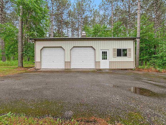 Tucked away at the end of a winding asphalt driveway, this 2005-built Northwoods retreat offers the perfect blend of rustic charm and modern comfort. Surrounded by towering trees on a serene 2.5-acre park-like setting, you’ll enjoy peace, privacy, and nature just minutes from Hwy 53. Step inside to a warm and inviting open-concept main floor, featuring a vaulted living room with floor-to-ceiling windows, tongue-and-groove ceilings, and two patio doors leading to the expansive wraparound deck — perfect for soaking in the forest views. The kitchen is beautifully outfitted with hickory cabinets, a breakfast bar, and flows seamlessly into the living and dining spaces. The main floor also includes two bedrooms, a full bath, and a laundry room with built-in storage and access to the backyard. Head upstairs to the showstopping primary suite, a spacious 19' x 19' retreat with vaulted wood ceilings, a walk-in closet, a private ¾ bath, and best of all — a private balcony overlooking the tranquil woods. It’s the kind of space that feels like a GETAWAY every single day!! The lower level is a blank canvas with high ceilings, an egress window, and is already plumbed for a future bathroom, offering incredible potential for added living space. Home also has CENTRAL AIR and solid 6 panel doors: and freshly built exterior steps and new railings on deck. The detached 36' x 24' garage has metal siding and a metal roof. If you’ve been searching for a secluded home with character, comfort, and endless possibilities, this is it. Don’t miss your chance to own this slice of Northwoods paradise. There is an adjoining 2.5 acre lot for sale also!