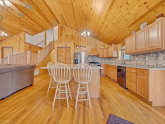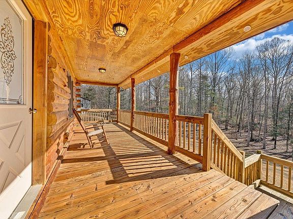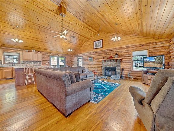 Beautiful log home on 21+ acres with Mountain Stream and large 50' x 37' barn - Great for horses! Stunning tongue & groove pine vaulted ceiling and Hardwood floors in Living, Dining & Kitchen area. Recently stained entire exterior. Two Master Suites - one on the Main level & one upstairs. Newer carpet in main level bedrooms &hardwood in upstairs Master. NEW HVAC in Sept. 2019. Updated ceramic tile floors in three bathrooms and the mud room. Granite counter tops in the kitchen with updated stainless steel appliances and space for large propane or electric range. Beautiful fireplace in Living room. Updated 32'x8' back deck for outdoor entertaining, which compliments the welcoming large front porch. Over-sized double car garage with large extra workshop area. Basement is framed and ready to be finished. Drywall in basement conveys to finish basement in the future. There are two more sheds - 12'x10' and 8'x8' for extra storage.