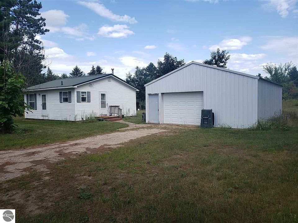 Solid little starter, retirement or vacation home situated on a nice 5 acre parcel. Property has multiple outbuildings for storage, cold storage building, apple orchard, couple cherry trees, wooded in back. Close in proximity to town, 15 min to Crystal Mtn, couple miles from the Hodenpyle Dam Pond (The Backwaters), 35 min from Traverse City, 25 min to Cadillac. Close to snowmobile trails and Federal land for your Up North experience.