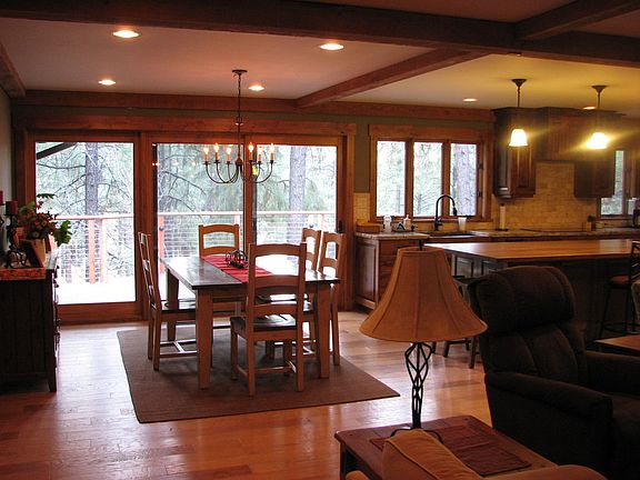 Four bedroom home on 2.27 acres of BEAUTY. You will feel the privacy and serenity of living in the forest, yet you are still only minutes from down town. The interior offers open living room and family room, dining room, a new Jotul wood burning stove (2008) in living room, a new thermostat controlled pellet stove (2008) in family room, completely remodeled custom kitchen with 4' x 8' walnut island and best of all, windows in every room to take in the beauty of the outdoors. Large deck overlooking property.