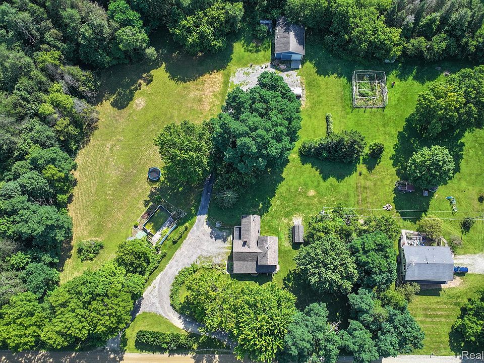 Welcome Home! This Nicely updated Home sits on almost 4 acres with a pole barn will check all your boxes. 1 year Home Warranty with full price offer. Possibility exists to convert the smaller downstairs bedroom to another bathroom or first floor laundry too while making the current one part of the master suite. Kitchen updated with hickory cabinets, Corian counter, and hand scraped solid wood flooring. Windows are all newer Pella brand with tilt wash features and built inside blinds. Stone fireplace in living room so cozy in the winter. Australian cypress wood floors. Oak trim throughout. Upstairs is two bedrooms plus a large walk in attic great for storage or potential to finish into more living space. Large shed for tools and mowers plus a 32x48 pole barn set up for heated workshop and remote for door. Almost 4 acres of private treed property. Enjoy wild life and lots of concord grapes and blackberries. This is a very well kept, move in ready home. Come fall in love today!