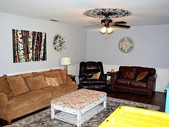 Step into your comfort zone with the farmhouse charm of this beautiful property that is situated on a well manicured and landscaped corner lot that's completely fenced in and it offers an abundance of shade in the spacious back yard and room for the children and pets to run and play. As you enter into the very spacious living room that is made for relaxing after a long day at work, you are greeted with an open dining area with great farmhouse appeal, great outdoor lighting and is just perfect for entertaining guest or having daily family meals/family time. The farmhouse feel flows into the very unique, not to mention gorgeous kitchen that's open to the dining area and it boast a ceramic tile back splash and flooring, nice appliances and a nice touch of rustic charm with a custom made colorful wood pallet wall where there is a utility and pantry area. The HVAC unit and water heater was replaced two years ago per seller. This home is a must see and will not last long so please do not delay and make your appointment today!