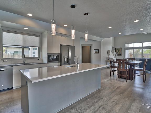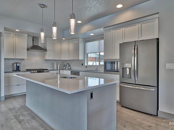 This stunning urban contemporary home in Northwest Boise is an absolute beauty. It boasts beautiful views and plenty of natural light, illuminating the hand-textured walls and hardwood floors. The kitchen is a chef's dream, featuring quartz countertops, stainless appliances including a gas cooktop range with hood, refrigerator, and an under-counter wine refrigerator. The floor-to-ceiling tile fireplace adds a touch of elegance to the living area. The primary suite is spacious, with soaring windows, luxury bathroom, and its own rooftop patio. But the luxury doesn't stop there. Step outside to the backyard and you'll find an in-ground swimming pool with motorized cover, perfect for summer gatherings with family and friends. There's even an outdoor fireplace and two patios for relaxing after a long day. This home is conveniently located close to downtown Boise, foothill trailheads, Hyde Park, and so much more. With so many incredible features, this home is truly must-see.
