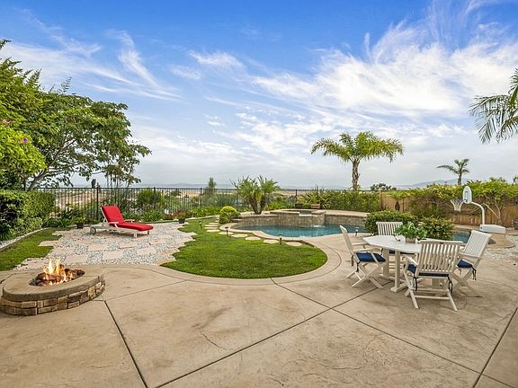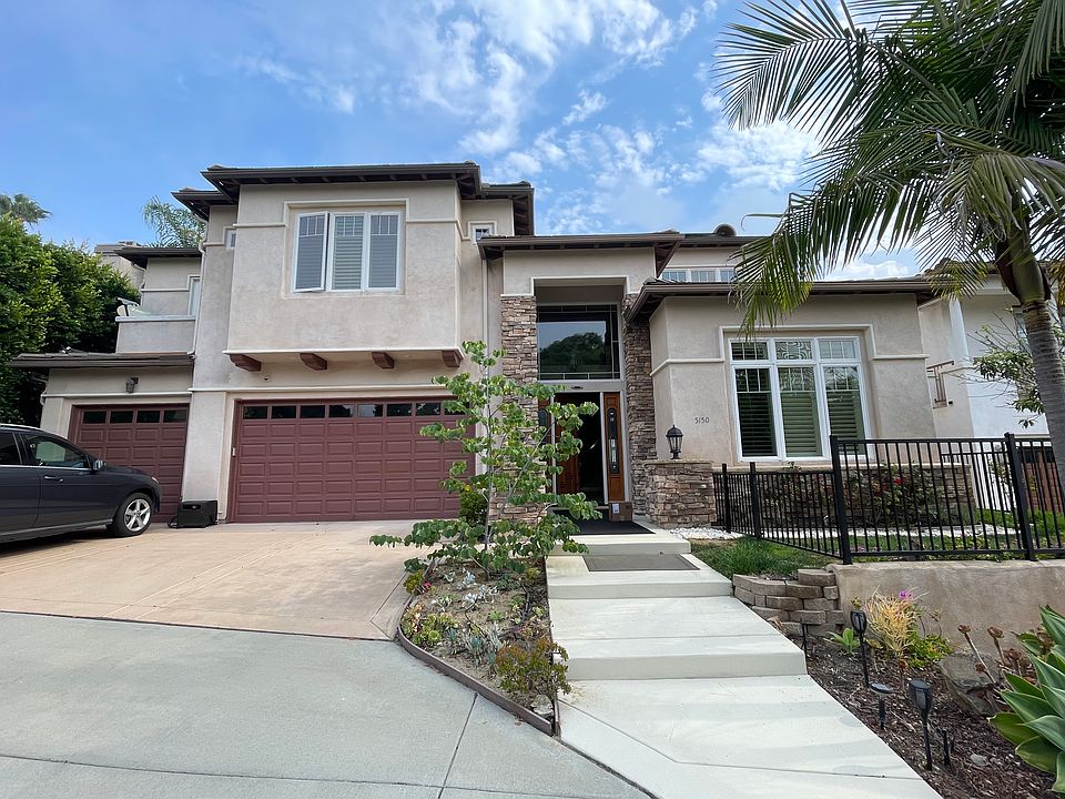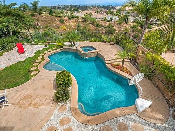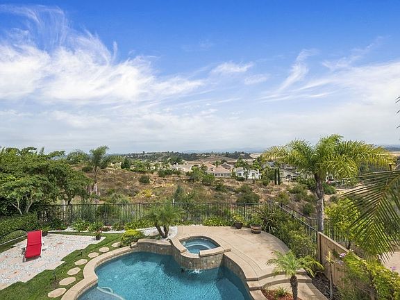 This exceptional VIEW property offers the option to rent either partial furnished or vacant. Situated on a spacious 12,000 square foot cul-de-sac lot, the home offers stunning panoramic views of the surrounding hills and mountains. Despite its seclusion, the property is conveniently located near Torrey Pines High School and other local amenities. Upon entry, the high-ceilinged living room offers a grand welcome. The gourmet kitchen is equipped with premium stainless steel appliances, including a 6-burner stove, double ovens, dual sinks, and a spacious walk-in pantry. The scenic breakfast nook provides breathtaking views of the surrounding landscape, making it the perfect spot to enjoy your morning meal The main level features a bedroom, full bath, and office, providing convenience and versatility. Upon entry, the 2-story living room with a fireplace and sitting area exudes elegance, welcoming you into a warm, luxurious space. Each bedroom offers either an ensuite or Jack-and-Jill bathroom for added privacy. The master suite is a retreat of its own, complete with sweeping views and a spa-like bathroom. Additional highlights include crown molding, recessed lighting, a wet bar with a fridge and wine rack, ceiling fans, and an upstairs laundry room for added convenience. This property is a rare find, offering both elegance and comfort in a private, serene setting. Tenants pays for all utilities and cable. One year lease required.