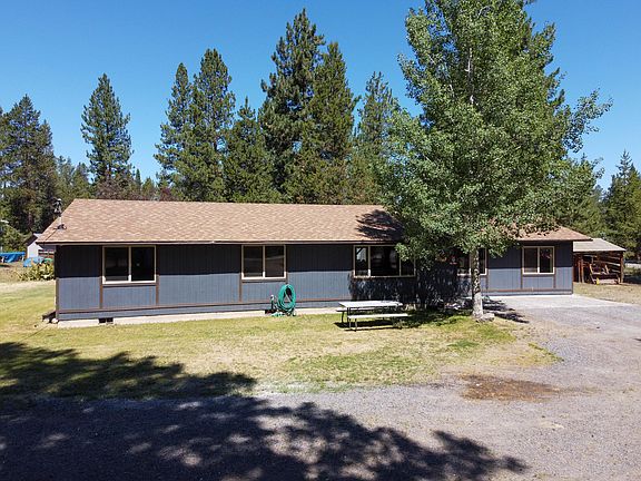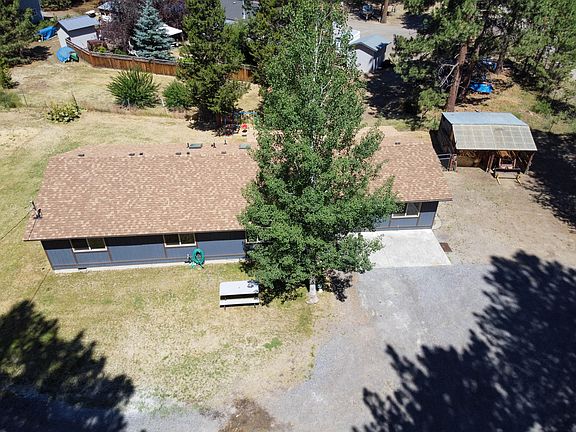 Nicely located on fenced corner lot. Home has been well cared for with new roof and newly pumped septic. Covered back deck with wood storage as well as storage for toys! Attached garage was converted to a family room and extra bedroom, giving the home 4 spacious bedrooms. Laminate flooring throughout with carpeted bedrooms. Living room has woodstove for those cold La Pine days and nights! Interior home has been freshly painted. Tile countertops in kitchen with ample cabinets. Room for table off of Kitchen. Lots of storage throughout the home. Insulated attached Garage and workshop with woodstove, as well as two additions on sides of garage and workshop, both with electric. Outdoor firepit with room for all your toys!!