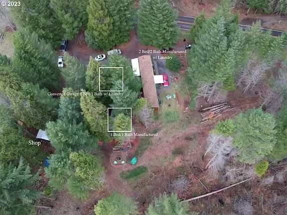 Privacy near the river with 3 separate dwellings. 2 manufactured homes, converted garage & shop on 1.7 Acres. 2 bed/2 ba + laundry mani home w/ vaulted ceilings, BI features, kitchen w/ cooktop/BI oven & carpeted/laminate flooring throughout. 1 bed/1 ba mani home w/ built-in features, carpeted & laminate flooring, mud room. Converted garage to 1 bed/1 ba w/ separate laundry. Shop w/ large swing doors & room for all the toys! Raised garden beds and apple trees. Well maintained w/ fresh paint.