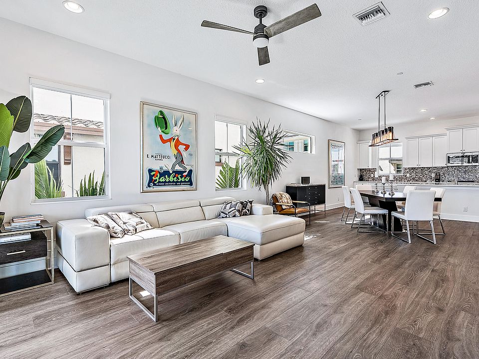 Welcome home to Palm Beach Gardens most desirable community, Alton. This rare available mid-end unit has Three spacious bedrooms, Three and a half baths and a Two car garage. You will find gorgeous wood look tile flooring throughout the entire home, plenty of radiating natural light throughout, and an open concept main level leading you to the perfect Chef's kitchen, with upgraded stainless steel appliances including a double oven. The balcony on the main level is perfect for morning coffee or a quiet night enjoying the Florida fresh air. The Primary suite boasts double walk-in closets, a frameless glass shower and double sinks. This space is flawless, including custom electric blinds in the primary suite adding the perfect final touch.