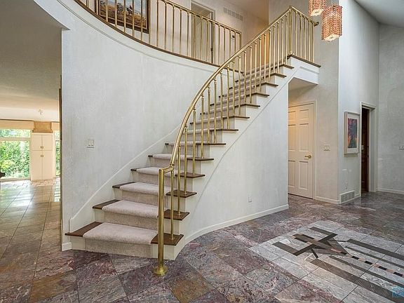 Frank Lloyd Wright design with some of the finest views in all of Sylvania overlooking Ten Mile Creek. Spectacular master suite and bath with spacious walk-in closet, granite throughout, plus a steam shower. Two wet bars with granite countertops. Library paneled den with built-ins. Sunroom overlooks private ravine setting. Kitchen w/granite countertops, sub-zero refrigerator. Finished rec room.
