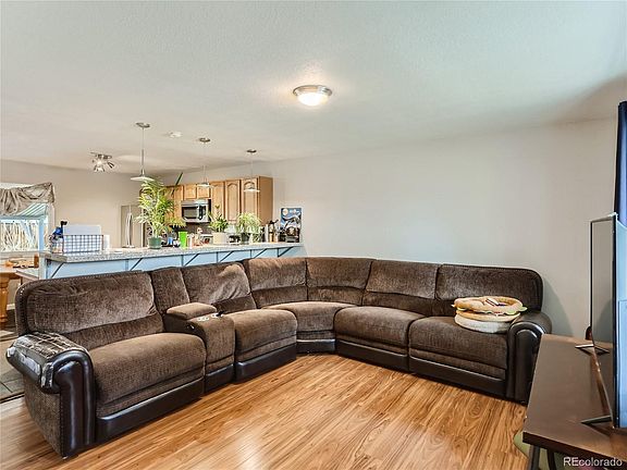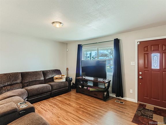 Updated ranch home in Montbello boasting a bright and open floor plan, with plenty of recent upgrades. New roof installed in 2020, new siding and gutters installed in 2018, and new windows installed in 2022, you can rest easy knowing that your home is well protected from the elements. The laminate wood flooring throughout most of the main level, installed in 2021, adds a touch of elegance to your space. This home also comes with a new water heater in 2022 and a new front door installed in 2020. And the best part? The siding, gutters, windows, and front door all have a lifetime warranty that transfers to the buyer! Step into the large kitchen and you'll find granite tile countertops, stainless steel appliances, backsplash, tile flooring, and plenty of cabinet and countertop space. The large primary suite features an updated full bathroom, making it the perfect retreat after a long day. Two more bedrooms and another full bathroom complete the main level, giving you plenty of space for family and guests. Relax on your expansive covered patio, and enjoy the huge backyard that is perfect for entertaining.