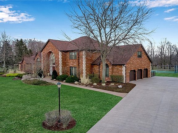 Spectacular sprawling all brick custom built estate situated on over 2 acres. Offering over 5,500 sq ft. With 4 bedrooms 3 full-baths and 2 half-baths. First floor showcases 2 story foyer, formal dining room and great room to boast wall of windows, 18ft ceilings and oversized bar perfect for entertaining. Updated kitchen to feature Cambria Quartz countertops and Sub Zero/Kitchen-Aid appliances. Second floor offers primary bedroom suite with his and her walk-in closets and additional bonus rm currently utilized as a gym. Updated primary bathroom complete with Elite custom cabinetry, quartz countertops, free standing tub, custom tile shower and radiant floors. No need to join a club, all the amenities right in your own backyard. Complete with private lot and oversized paver patio that over looks park like setting. Enjoy the newly lined pool with convenient access to half bath and mud room, along with newly resurfaced tennis court. Architectural roof replaced in 2016 and private well for sprinkler system. Prequal or proof of funds required prior to all showings. MUST SEE ADDITIONAL REMARKS