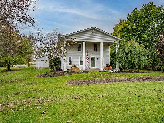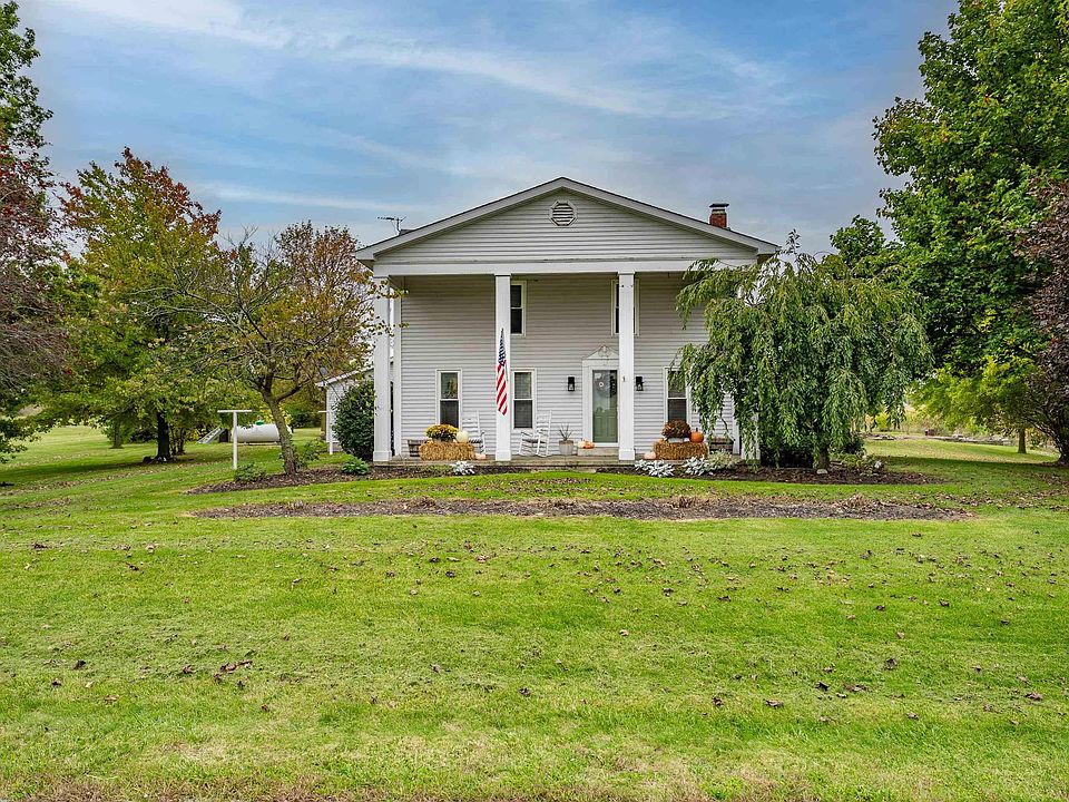 Take me home country roads! Looking for a peaceful estate boasting an idyllic setting on 2.27 beautiful acres, a small pond with fountain, wood deck & stunning views in every direction? This freshly updated, move-in ready Georgia mansion-style house is a must-see! Located only minutes outside North Manchester, this 3 bedroom, 1.5 bath home has tons of character & is sure to charm from the moment you arrive! Nestled among many tall trees offering shade & privacy, long gravel drive leads to large parking area & attached 24x24 garage. Built to last in 1890, you have the best of both worlds with some classic style elements alongside many modern aesthetic upgrades. Stately exterior features an impressive full length vaulted covered front porch with plenty of room to watch the seasons change. Inside you’ll find a bright welcoming atmosphere complemented by the wood style flooring, white walls & full renovation with newer windows & roof! Open concept layout allows everyone to be together from the cozy living area with accent wall to the well-lit dining room with built-in shelves. Kitchen has everything you need with abundant cabinetry, SS appliances & bonus flex room off with even more built-in storage & door to walk-out back deck & garage access. Main floor primary bedroom has half bath en suite. Trendy full bath has wainscoting, modern lighting & updated vanity, also on main floor. Upstairs are 2 more comfortably sized bedrooms with ample storage throughout. Giant back yard can be enjoyed from the raised wood deck or the side patio with attached fire pit great for burning leaves or roasting marshmallows! Pond adds to the calm zen views & with farmland all around it is very quiet & serene with lots of room for all kinds of outdoor fun & activities. Stunning scenery also includes apple & peach trees & space for as much of a garden you desire! Easy access to IN-114, 13, 14, 5 & 105 with Warsaw, Wabash, Huntington, Columbia City & SW Fort Wayne only half an hour away. Do you want to get away from the hustle & bustle of city life without sacrificing a long drive & still be able to bask in amazing countryside? Don't let this opportunity slip away—reach out today!