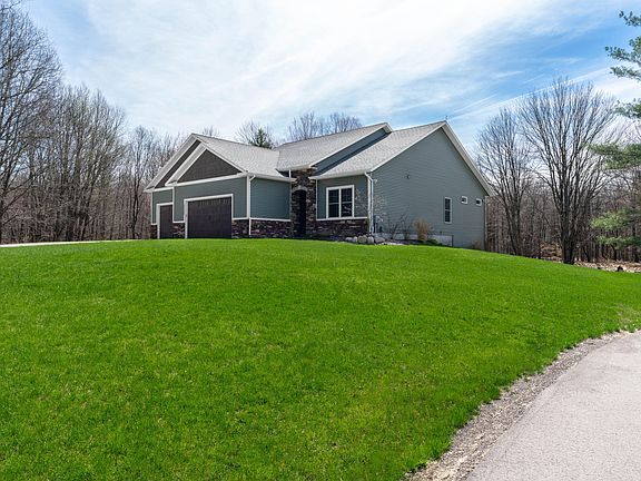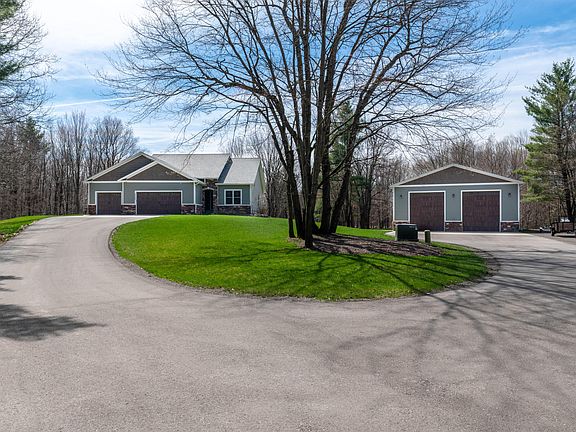 FRUITPORT PARADISE on nearly 15 acres with a private pond and 40' X 60' ''stick-built'' garage! Come see this charming ranch with an open floor plan and breathtaking views of the pond, wildlife and woods. The main floor features the master bedroom with a tile shower and a walk-in closet, main floor laundry, and an open kitchen with a snack bar. Walk over to the living room area and you'll see a custom book case, 12.5' X 14' living area, and a large picture window overlooking the pond. Walk down the stairs to the walk-out basement into a game room, work out area, wet bar (kegerator, ice machine, sink, dishwasher, & mini fridge), living area, and another bedroom. The basement also boasts an open concept allowing for adequate daylight and stunning views of the land!