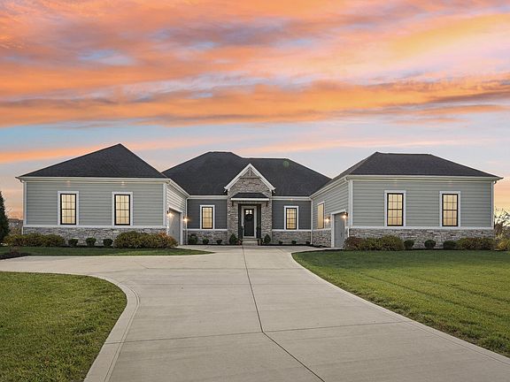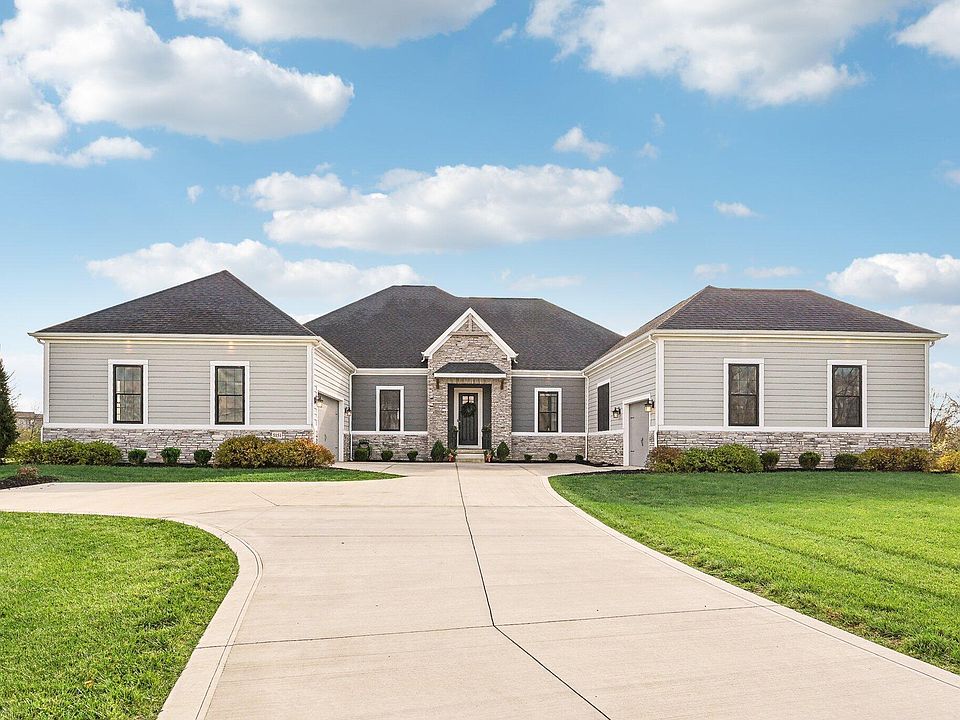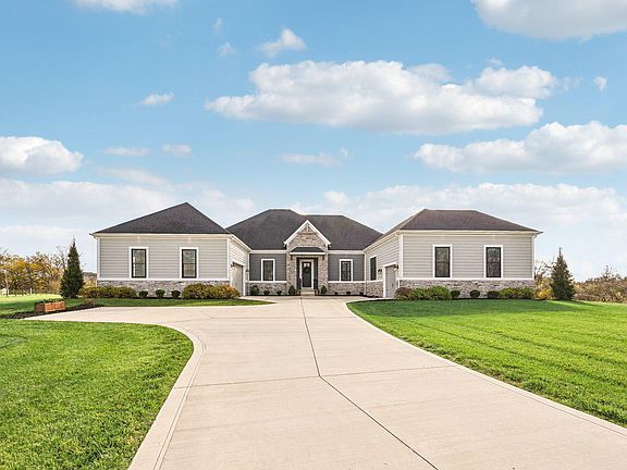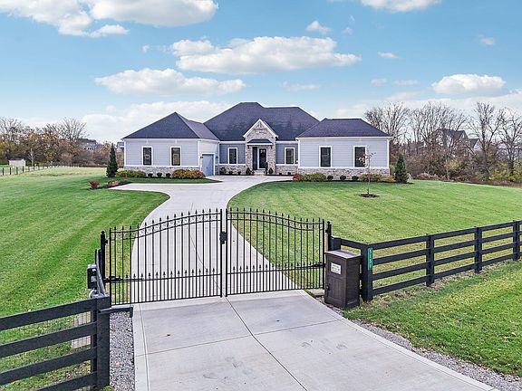 Stunning custom built home situated on 3 acres in the sought-after Big Walnut School district. The open concept great room boast tray ceilings, engineered hardwood floors, gas fireplace with build-ins. The kitchen adjacent has 10 ft Quartz island with farmhouse sink, 42 in cabinets, chefs gas stove, massive walk in pantry and large eat in area with screened in porch out back. All 4 bedrooms are on this level with large primary suite with zero entry shower with bench and double vanities. There is office on this level along with 1/2 bath at garage entry for convenience. The walk-out lower level, accessible via elevator, host a large gathering area with projector, home bar, 1/2 bath and covered patio. Outside there is electric gate, fenced yard , storage shed and whole house generator.