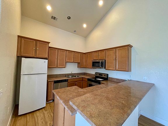 Duplex at the end of a cul-de-sac with no neighbors to one side. One large master bedroom with large walk in closet and a generous size second bedroom downstairs. Upstairs is an open concept living area and kitchen with vaulted celling. Entire home has new luxury vinyl flooring, paint, new microwave, and new water heater. There is plenty of storage and a 2 car garage . Home is ready for new tenants. Tenant is to pay all utilities. No Smoking, No Pets, Tenants pay all utilities.