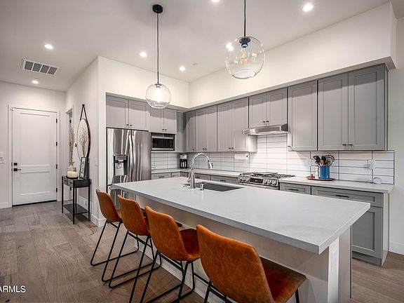 Spectacular Camelback and Piestawa Peak Views are enjoyed from this premium, upgraded location in the coveted ''Nirvana at Colter' development . The private roof deck with custom sail shade captures views and is a perfect place to enjoy an early morning coffee or a movie at sunset. The home incorporates tasteful design language and has been highly upgraded with wood floors throughout the spacious living and dining room extending up the stairs and into all bedrooms. The Kitchen has an incredible walk in pantry with oversized island. With 3 generous bedrooms as well as as a large second living area on the bedroom level , functionality is assured. The community pool and adjoining grass park, barbecue and designated pet run further enhance the Nirvana lifestyle. Nirvana is centrally located in Uptown Phoenix, an urban mecca that is undergoing a food and cultural renaissance with immediate access to 7th Street's burgeoning Restaurant Row, Central Avenue hotspots and boutiques galore.