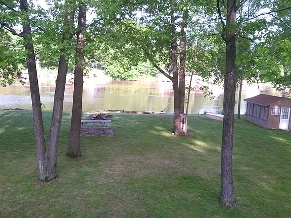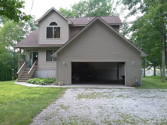 Beautiful Sanford lake home with 110 feet of water frontage! Lower level walk out that is plumbed for a bathroom and ready to be finished, fresh paint throughout, new blinds, city water is hooked up, all appliances including washer and dryer are staying. Nice upper level deck and established trees in the yard!