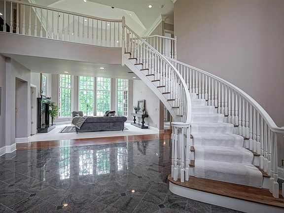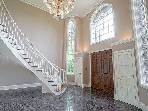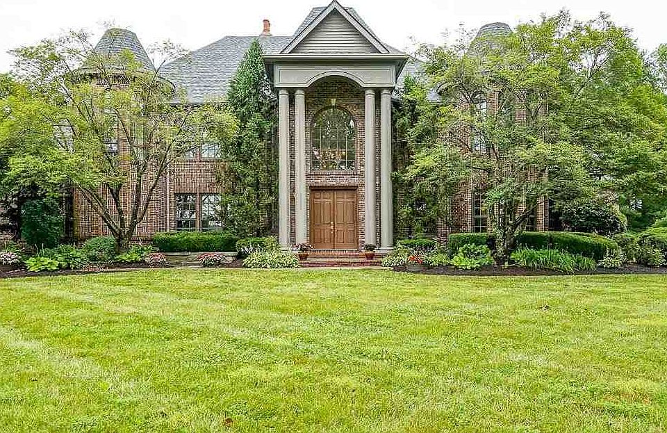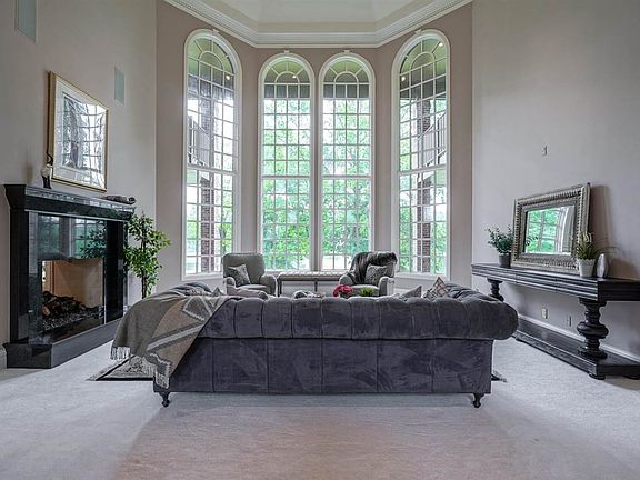 This STUNNING all-brick chateau-styled home is nestled on a lake and just over 12 acres of immaculately manicured landscaping. Upon entering the grand 2-story foyer with granite flooring you will see the gorgeous spiral staircase and floor-to-ceiling windows in the living room with a spectacular view of the lake. The gourmet kitchen has Brazilian granite countertops and hardwoods, 8' center island, gas cooktop & double-ovens. Master suite on main has a fireplace, patio access, 2-person shower, walk-in closet, and more! Upstairs you'll find 4 more bedrooms, a loft, and 2 outside balconies. Main floor office has turret windows and Brazilian hardwood flooring. HUGE basement has storage & extra living space. New roof June 2021.