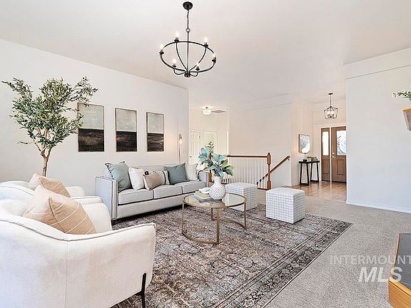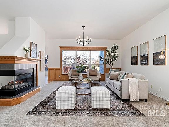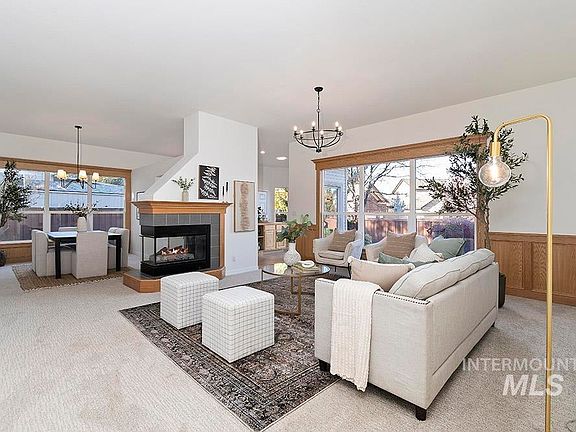 Stately residence set on a spacious corner lot in desirable Surprise Valley! Bordered by stunning foothill views in a picture-perfect community featuring Greenbelt access, two pools and sport courts. Updates include a newer roof, new carpet, paint, and modern light fixtures that create an elegant ambiance throughout. Grand living room and formal dining room anchored by a 3-sided gas fireplace offers the ideal backdrop for cozy gatherings on cool, Boise evenings. Soaring ceilings and walls of windows framed by custom millwork fill the rooms with natural light. Spacious eat-in kitchen boasts new stainless-steel appliances, double oven and direct patio access. Double doors lead into the master retreat complete with ensuite and walk-in closet. An entertainer's paradise - the lower level expands the living space with an 840 SF bonus room, offering endless possibilities for work or play. Enjoy the privacy of mature landscaping, with a recently refinished deck and covered pergola. Roof is only 4 years old!