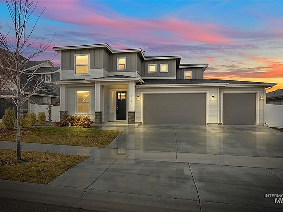Meticulously maintained and designed for entertaining inside and out with soring ceilings letting in an abundance of natural light. Kitchen features built-in gas cooktop, granite counters, full tile backsplash, plenty of storage, large island with breakfast bar, stainless sink appliances and corner pantry. Main level home office, mud area, full bathroom and bedroom. Upstairs is the generous size ensuite boasting tray ceiling, dual granite vanities, walk-in closet, walk-in shower and separate soaker tub, along with two additional bedrooms, another full bathroom and utility room. Plenty of space in the 4-car garage with epoxy finish plus a storage shed. The exterior is a dream with expansive covered patio, large custom built-in grill area, fully fenced in-ground heated pebble tech pool with Bermuda shelf and garden area. Relax in your oasis and enjoy the beautiful sunsets across open space. VA Assumable loan with 2.5% interest rate!