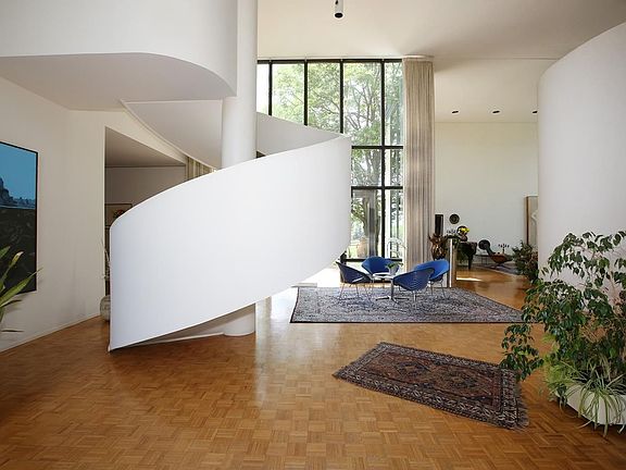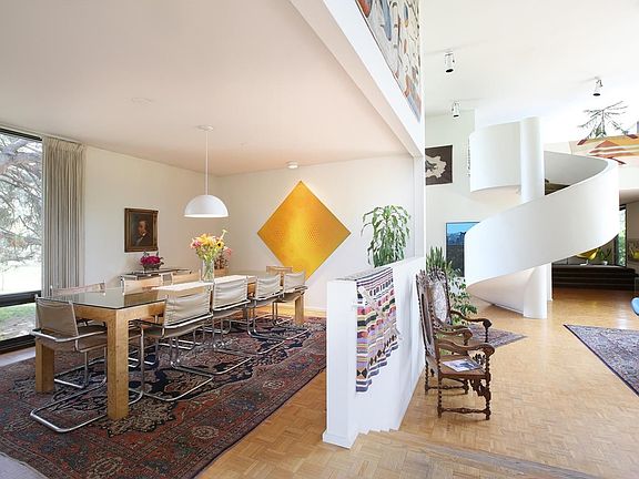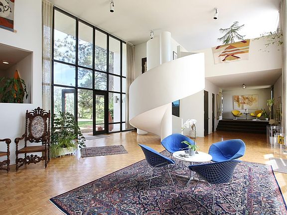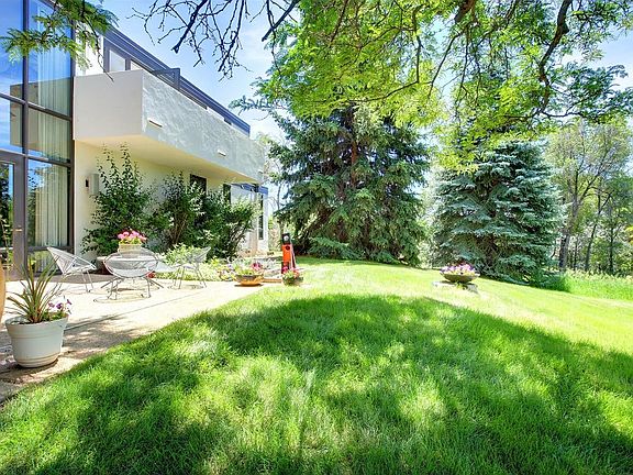 This Rare Custom Contemporary home w/ a great Mountain views on 2.38 lush acres in quiet Historic Rural Greenwood Village was ahead of it's time. Tucked back off the street for privacy, enter the foyer under 20 ft. ceilings to see snow capped mountains & a dramatic circular staircase swooping your eye around to experience the rest of the creative flowing architectural of each room. In the foyer a curved wall sweeps you around through the living/entry room to the family room with fireplace & the other way around to the dinning room & study/den. Climb the stairs for more amazing views from the private second floor master suite & private balcony. 2 main floor bdrms & one can be separated in 2 rooms by a built-in collapsible wall. Vintage mid-century kitchen & forward thinking flexible cabinetry open on two sides to the dinning room. Handy pass-through from study/den to kitchen. Two patios, one for each time of day w/ views. Short walk to the Highline Canal & trails. Quiet country feel.