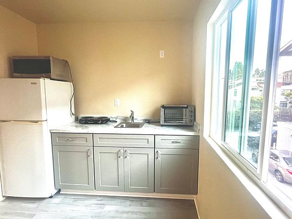 Second floor large studio with kitchenette area. New cabinets, vanity, flooring and windows. The apartment is only a few minutes away from the beach, restaurants and grocery stores. Enjoy the Bolsa Chica Ecological Reserve and various nature walks which is literally around the corner. Off-street parking included, with optional extra large garage available for rent $240/monthly.
