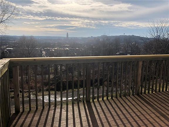 Welcome to your quiet hill top home on Hillcrest street. This beautiful house features hardwood floors throughout the first and second floors and an amazing view of the Cathedral of Learning from the deck. The spacious eat-in kitchen has heated floors, a window over the sink, exposed brick behind the gas stove and tile floors for easy clean up. The sliding doors from the kitchen to the rear deck bring in ample natural light and access to fresh air in the warm season. Upstairs there are two bedrooms that each have hardwood floors, a closet and windows. The upstairs full bathroom has recently redone tile work, a privacy window and an efficient layout. The back yard expands down the hill towards a small retaining wall that carves out private parking spaces for 2 small cars.