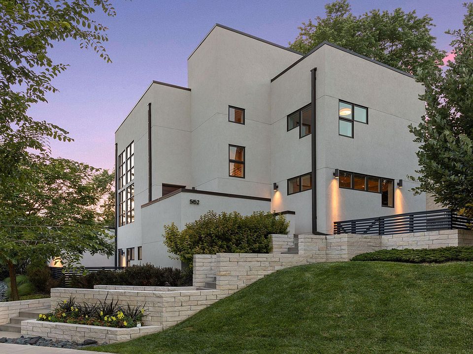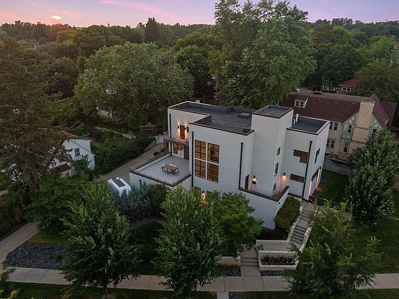 Beautifully remodeled contemporary home located across the street and overlooking the Minnehaha Parkway. Enjoy a floorplan that lends itself to easy entertaining with incredible indoor-outdoor flow, two story wall of windows flooding the living room with natural light and two spaces to enjoy the outdoors whether it's a quiet breakfast or lunch on the rear patio or a large dinner party on the 500 sq. ft. terrace with tree top views. A main level bedroom offers an easy conversion (adding a closet) and the upper level hosts 3 additional bedrooms. The primary suite offers a private balcony with tree top views, large walk-in closet with incredible built-ins, laundry as well as a spa-like bath with soaker tub, separate shower and a double vanity. Continuing up to the top level brings you to the roof -- a flat and spacious area could be transformed and utilized as another private outdoor oasis easily. The walkout lower level hosts a large family room with wet bar and beautiful wine cellar.