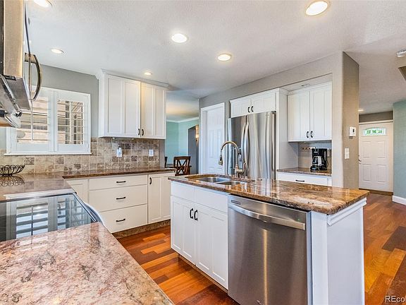 Welcome home to Sunrise Creek! This thoughtfully updated home greets you with grand vaulted ceilings, Brazilian cherry hardwood floors, tons of natural light & an open floorplan that seamlessly ties together the main living spaces. The well-appointed remodeled kitchen boasts SS appliances, granite counters, ample espresso cabinetry, a center island & eat-in dining. Enjoy family movie nights in the inviting den, complete with built-in speaker system or cozy up by the gas fireplace on cool Colorado evenings. Retreat to your private primary bedroom on its own floor featuring vaulted ceilings, a large walk-in closet & renovated ensuite bath with a dual shower head walk-in shower. The finished walk-out basement includes a large den, a private 5th bedroom & a bathroom - great for guests. Enjoy entertaining on the large 2-tier wood deck overlooking a private & professional landscaped backyard with mature trees & backing to ranchettes. Ideally located on a quiet cul-de-sac & within minutes of neighborhood Jefferson County schools, parks, shopping, dining & easy access to major roadways. This property will not last long, book your showing today!