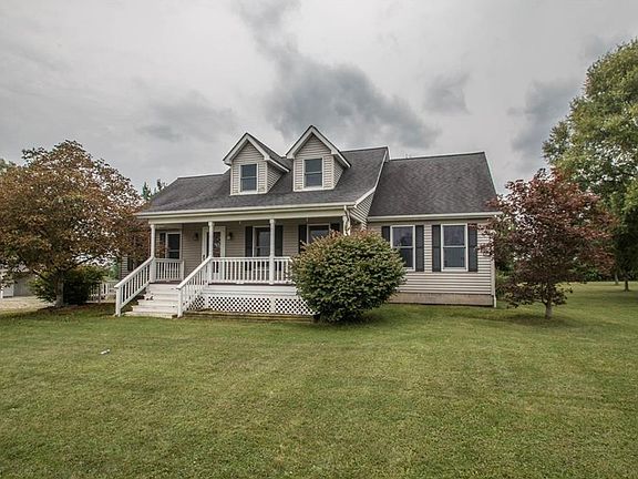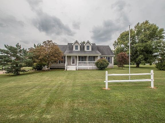 Country Cape Cod nestled on 2.65 acres with a most welcoming curb appeal! The cozy front porch provides the perfect spot for those peaceful/relaxing moments. Once in you are greeted with a warm and inviting living room complete with wood-burning stove. First Floor Master suite with Master Bath and walk-in closet and two additional bedrooms all with newer ceiling fans and an additional full, guest bath. Generous sized kitchen employs warm toned, wood cabinets with loads of counter space, beautiful easy maintenance, laminate floors and all appliances are included. Large Second story is framed and vented for heat/AC. Full Basement w/ laundry room is awaiting your finishing touches! Rear sliding door leads to the 2 car garage with 24 x 14 work shop w/ man door. Newer carpeting throughout. 1 year home warranty is included! Please call today for a private tour of this amazing property!