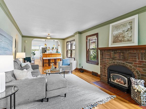 Charming, updated and spacious! This 3-bedroom, 3-bathroom home is located in a serene Minneapolis neighborhood just minutes from Lake Nokomis, Lake Nokomis Beach, and Minnehaha Creek. Surrounded by parks and within close proximity to Hale Elementary, the setting is ideal for both relaxation and convenience. A welcoming 15x5 front porch invites you to sit and enjoy the quiet neighborhood ambiance. Upon entry, you're greeted by a bright four-season porch with vaulted ceilings and tiled flooring—perfect for enjoying sunsets in comfort all year long. From there, step into a generous living room featuring timeless hardwood floors, a cozy fireplace with a modern wood-burning insert, brick surround, and a wood mantel. Crown molding adds architectural detail, while large windows provide abundant natural light. A conveniently placed closet offers extra storage. Through a wide arched opening, the living room flows seamlessly into the kitchen, which continues the cohesive hardwood flooring. The kitchen is equipped with stainless steel appliances, high efficiency LED lighting, and a peninsula with breakfast bar seating, which creates a perfect spot for casual meals or entertaining. The kitchen opens to a bright, spacious dining room highlighted by a soaring 12-foot vaulted ceiling, ceiling fan, and a large bay window that floods the room with natural light. Two closets add storage versatility, while a built-in entertainment center with shelving and an included TV make it ideal for both relaxing and hosting guests. There is also convenient access to the backyard. Two bedrooms are located on the main floor, each with hardwood flooring, ceiling fans for added comfort, multiple windows, and additional closet space. The nearby bathroom has been stylishly remodeled and includes a soaking tub with a detachable shower head, tile surround and flooring, a medicine cabinet, and a hall closet. Additional built-in cabinetry in the hallway offers extra storage or space for decorative display. Upstairs, a versatile space serves as a third bedroom, complete with hardwood floors, multiple windows, a closet, and included queen bed and bedside table. This level also features a half bathroom with generous space for potential shelving or cabinetry. The space is also ideal for a home office, media room, or additional living area—offering flexibility to suit your needs. The lower level opens into a warm and inviting family room adorned with custom oak walls, a tray ceiling, wood flooring, and an infrared fireplace built into cabinetry. The TV in the family room is included in the sale of the home. This cozy space is perfect for movie nights! Adjacent to the family room is a dedicated office space with tile flooring, a built-in wood desk and shelving—ideal for remote work or hobbies. A bonus room on the lower level can serve as a fourth bedroom with the addition of a door, and includes a closet, carpeting, and walk-out access to a three-season porch. The TV in this room is included in the sale of the home. The nearby full bathroom is remodeled and features a tub-shower combination, a single vanity, and hall closet. The designated laundry area includes tile flooring, shelves, hooks, and a brand-new washer installed in May 2025. Walk out from the lower level to a large three-season porch, which provides a quiet retreat and easy access to the backyard. Outside, enjoy a spacious patio perfect for entertaining or relaxing. The yard features thoughtfully designed landscaping and beautiful trees. A detached two-stall garage provides year-round protection for vehicles and ample space for storage if needed. Both the house and garage received a brand-new roof with 30-year shingles in the summer of 2024, and comes with a transferable warranty. Many additional updates have been completed to ensure modern comfort and peace of mind for years to come.
