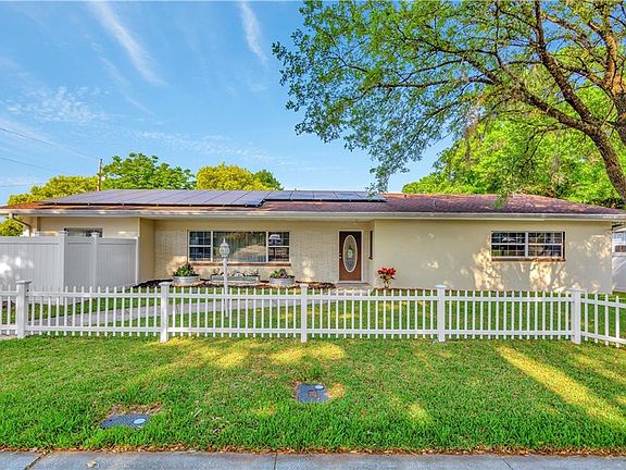 *SQUARE FOOTAGE* This spacious corner lot, in-ground pool home has many options and possibilities. The front door opens into a wide foyer and large living and/or family room. The dining room is open to the kitchen and the smaller of the bonus rooms created with a fully enclosed finished porch with south-facing windows that let natural light flow in. A sliding door separates the finished porch space to create an opportunity perfect for an office or craft room with an exterior entrance through a screened in patio. This office space has an entry to the home through the laundry room, and into Bedroom 3. The ground-floor primary bedroom will accommodate a king-size bed and associated furniture. The walk-in closet is approximately 7x7. The ensuite bathroom has recently been updated with new shower and vanity. The secondary bedrooms also benefit from the 6 foot wide hallway where a sizable linen closets is easy access to all bedrooms and the other bathroom. The garage is an off-street, rear facing, exterior entrance only just off the dining room/back door, and includes a 13 ft wide bonus room in the front with windows that can be used for storage or a work bench. Access too the attic is in this bonus room. Separate laundry room is just off bedroom 3. Roof is 3 years old. 34 Solar panels were installed 2 years ago. Approximately 85% of the energy needed for the home is currently coming from the solar energy. Sellers are offering a 1 year home warranty with a full price offer. Exterior paint has been done since the first of the year. A 10x10 exterior shed is in the back yard just off the screened patio. There is irrigation in the yard and it has not been used by the current owners. The kitchen cabinets need some love and is good place to put your own mark on. No HOA! No CDD!