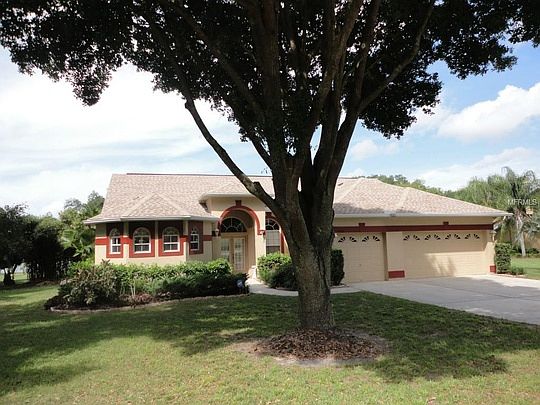 LAKEFRONT BEAUTY IN LAKE BERNADETTE GARDENS!!! REDUCED PRICE AND $2,500 NEW APPLIANCE CREDIT TO BUYER W/ACCEPTABLE OFFER! This fabulous one owner home was constructed by Engle Homes on a larger oversized .60 acre beautiful lakefront lot on Little Lake Bernadette!...Features of this 1998 Bayhill model include 2,443 sq ft of living area consisting of 4 bedrooms, 3 baths, separate family and living rooms, formal dining area, indoor utility, wood burning fireplace, and larger 3 car garage! Spacious master bath features dual separate sinks, garden tub, separate shower stall. Master bedroom has TWO walk in closets and sliders connecting to stretched covered lanai! Living room features wood flooring, family room and bedrooms 3 & 4 feature wood laminate, and ceramic tile in all wet areas and bathrooms. High ceilings and plant shelves throughout the home. The yard is well manicured and features plenty of room to add a pool...beautiful oak trees and a gorgeous back yard create a park like setting overlooking the lake!...new exterior paint and new roof in 2013! HOA fee only $50 per year! No CDD fee! Shown by appointment call today before you miss out on this great home and property in Lake Bernadette Gardens!