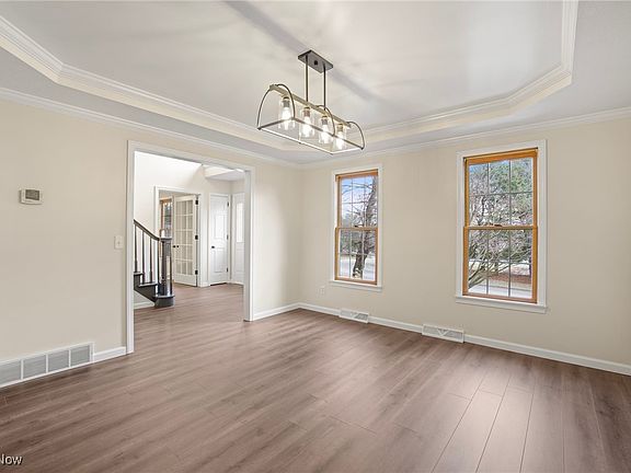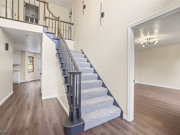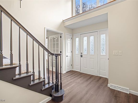 Location, location! This fully updated 4-bedroom Colonial in Quail Hill Estates is situated in the Jackson Local School District, minutes from Belden Village, The Strip, I-77, and the Airport. Upon entering, you’ll be welcomed by new LVP flooring (2024) and a modern wagon wheel chandelier in the expansive 17ft foyer. The large eat-in kitchen boasts new granite countertops, timeless subway tile, and all appliances included. Step out onto the rear deck to enjoy your morning coffee or a summer BBQ while overlooking nearly 3/4 acre of property. The kitchen opens to a 1/2 bath, the dining room with trayed ceilings and the living room, featuring a wood-burning fireplace (gas available) with a shiplap accent. An office/bonus room with French doors as well as a laundry/mudroom with custom built-ins round out the main level. Upstairs, you’ll find 3 spacious bedrooms and a remodeled guest bath with marble hexagon tiles. The master suite is a dream, featuring a custom Maple closet with storage galore and a luxurious bathroom. The spa-like bathroom includes a massive 72" freestanding tub and a polished marble shower, offering a serene retreat. The finished lower level adds over 800 sq ft of living and storage space, with matching LVP flooring and a tankless water heater. New paint, plumbing, electrical, carpet (2024), plus a new driveway (2024), roof (2020) and 2.5 car deep garage make this home move-in ready. Schedule your showing to tour this stunning RF Designs home today!