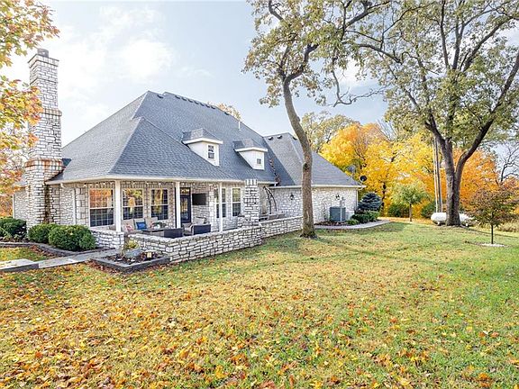 Experience the epitome of luxury living in this magnificent all-stone custom-built estate. This architectural masterpiece boasts a timeless elegance that sets it apart from the rest. With four spacious bedrooms, including a lavish master suite, three full bathrooms, and two half bathrooms, this residence offers the ultimate in comfort and convenience. The exterior of the home exudes opulence with its striking steel doors and copper dormers, setting the tone for what awaits inside. Nestled on a sprawling 4.5 acres in Andrew County, this property provides the perfect blend of privacy and space. As you step inside, you'll be greeted by the grandeur of a meticulously designed interior. Every inch of this residence reflects high-end craftsmanship and meticulous attention to detail. The main floor features an office space that has access to a lanai that offers pretty as a picture scenery. The master suite is a sanctuary unto itself, boasting a palatial bathroom that pampers with its luxury features and a walk-in closet that rivals a high-end boutique. The additional bedrooms also offer en-suite or nearby bathroom access for added convenience.